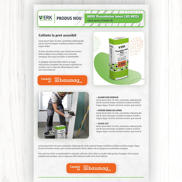 For Werk Romania, a construction materials company, I managed social media marketing, print and digital design, UI, photography, and video. I developed cohesive visual content to strengthen the brand’s identity and ensure consistent communication across all platforms.